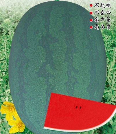 ■ 特征特性 :早熟种,雌花开放果实成熟28天左右。全生育期90天左右。植株长势稳健,抗病抗逆性强,适应性广,易坐果。果实椭圆形,果皮墨绿色底上覆暗条带,果面光滑无棱带蜡粉。瓤色深红,瓤质酥脆,中心糖14%左右,口感好,风味佳。平均单果重8-10kg左右,大者20kg以上(特殊栽培),一般亩产6000公斤以上。皮厚1.0cm左右,果皮硬度强,耐储运。